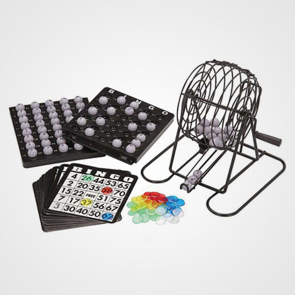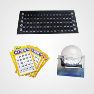 Bolillero con seleccionador automático. Bolillas numeradas hasta el 75. 18 cartones de bingo. 150 fichas para marcar. Medida del Bolillero: 16.5cm diámetro
